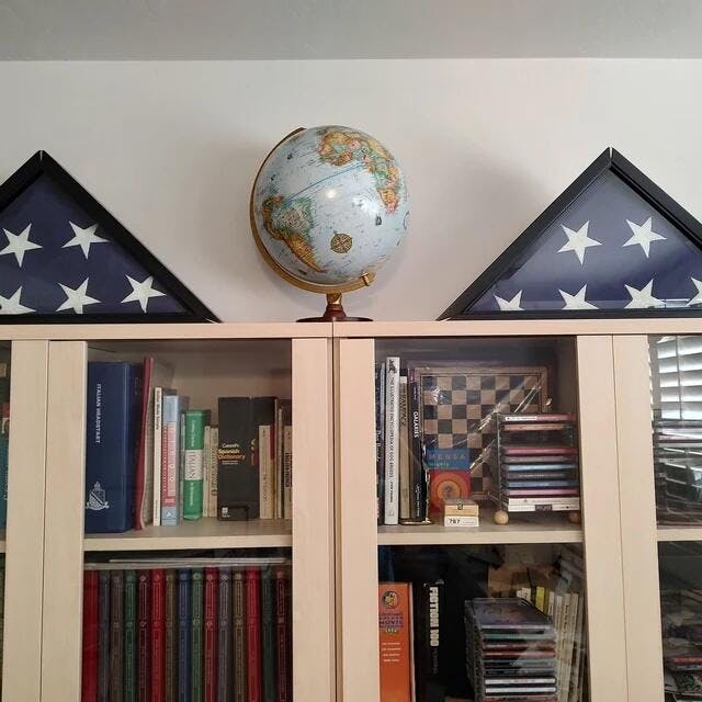 Display it in this beautiful Old Glory Flag Display Case Glass Cabinet, designed to showcase a folded flag up to 5x9.5' in a unique triangular compartment.